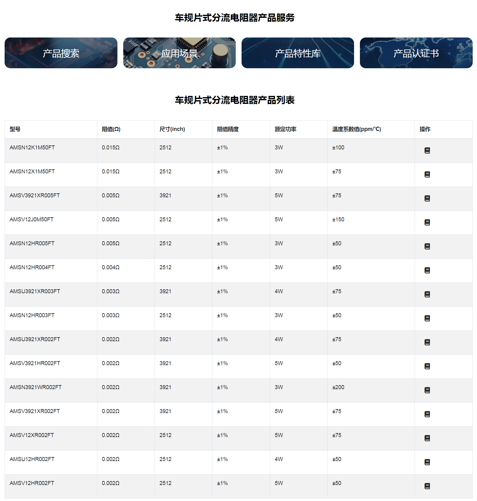 车规片式分流电阻器◆特点符合AEC-Q200汽车标准条款最高功率可达2W 最低TCR为±50 ppm/℃ 适于作电流探测用电阻器如电源电路等机械强度高、高频特性优越符合RoHS指令要求符合无卤素要求◆应用*开关电源、过电流保护、电压调节器、电源转换器、充电器、便携式设备