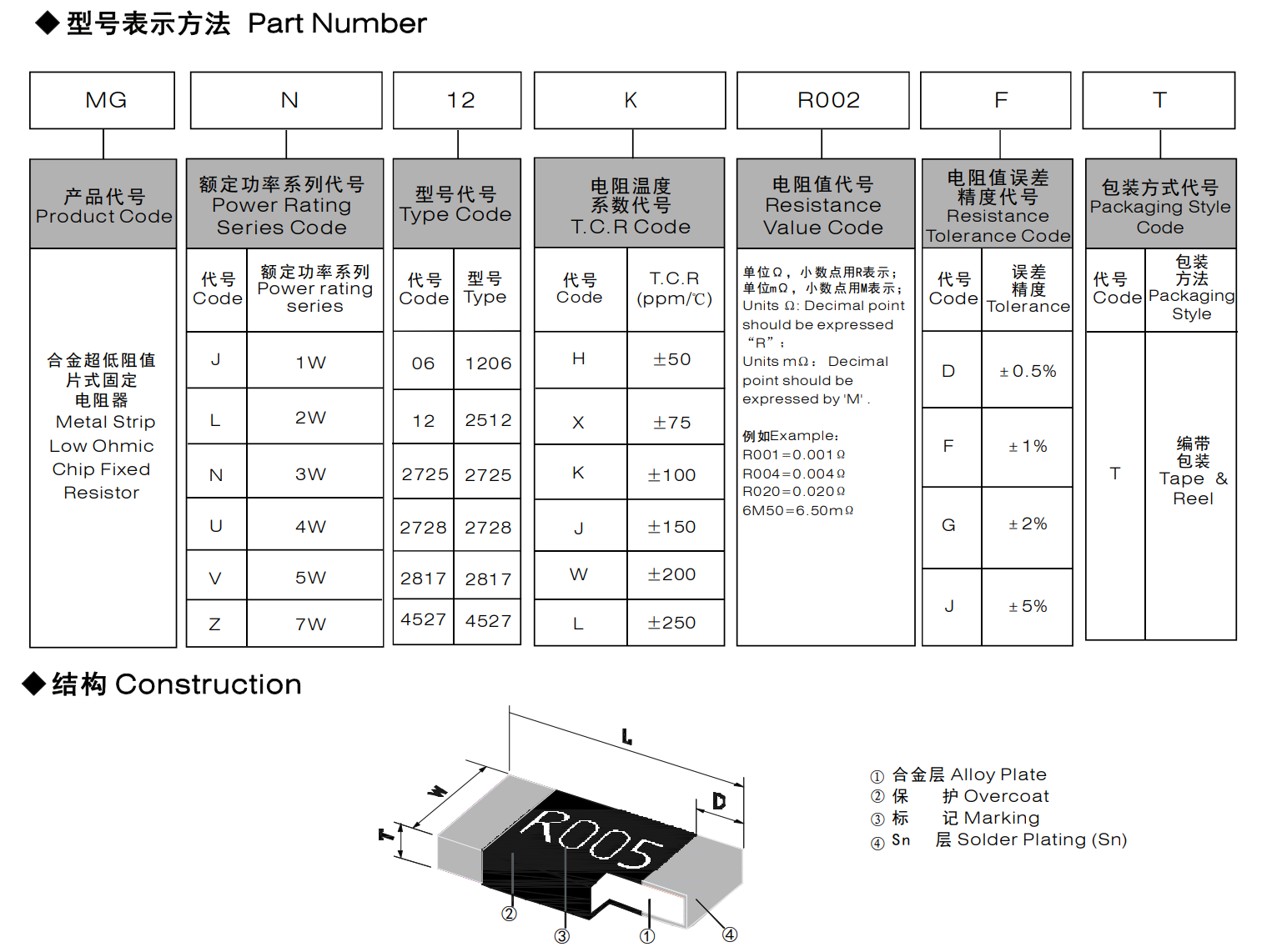 合金超低阻值片式固定电阻器最高功率可达7W 最低TCR为±50 ppm/℃ 适应再流焊与波峰焊装配成本低,并与自动装贴设备匹配适于作电流探测用电阻器,如电源电路等机械强度高