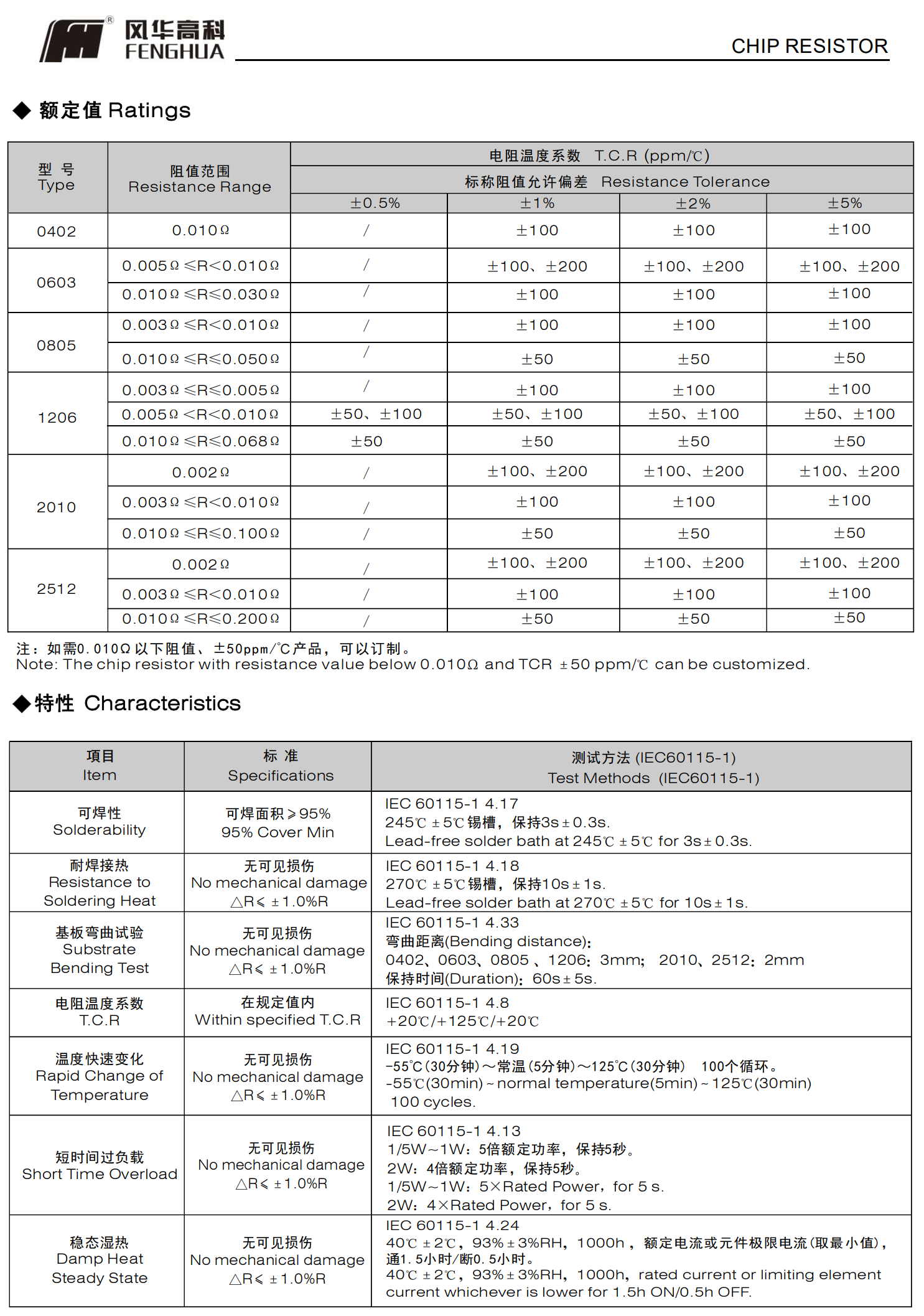 最低TCR为±50 ppm/℃