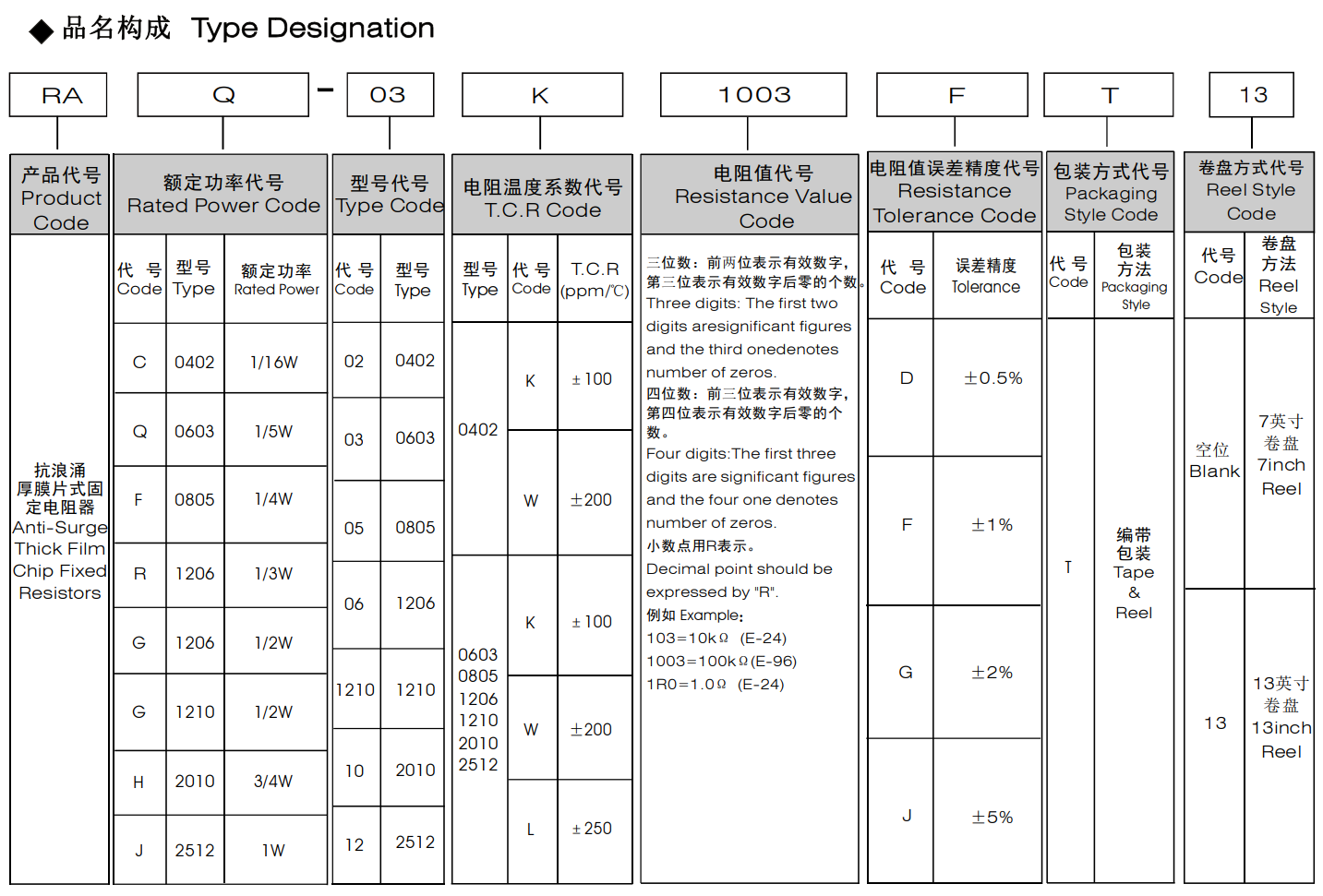 抗浪涌厚膜片式固定电阻器