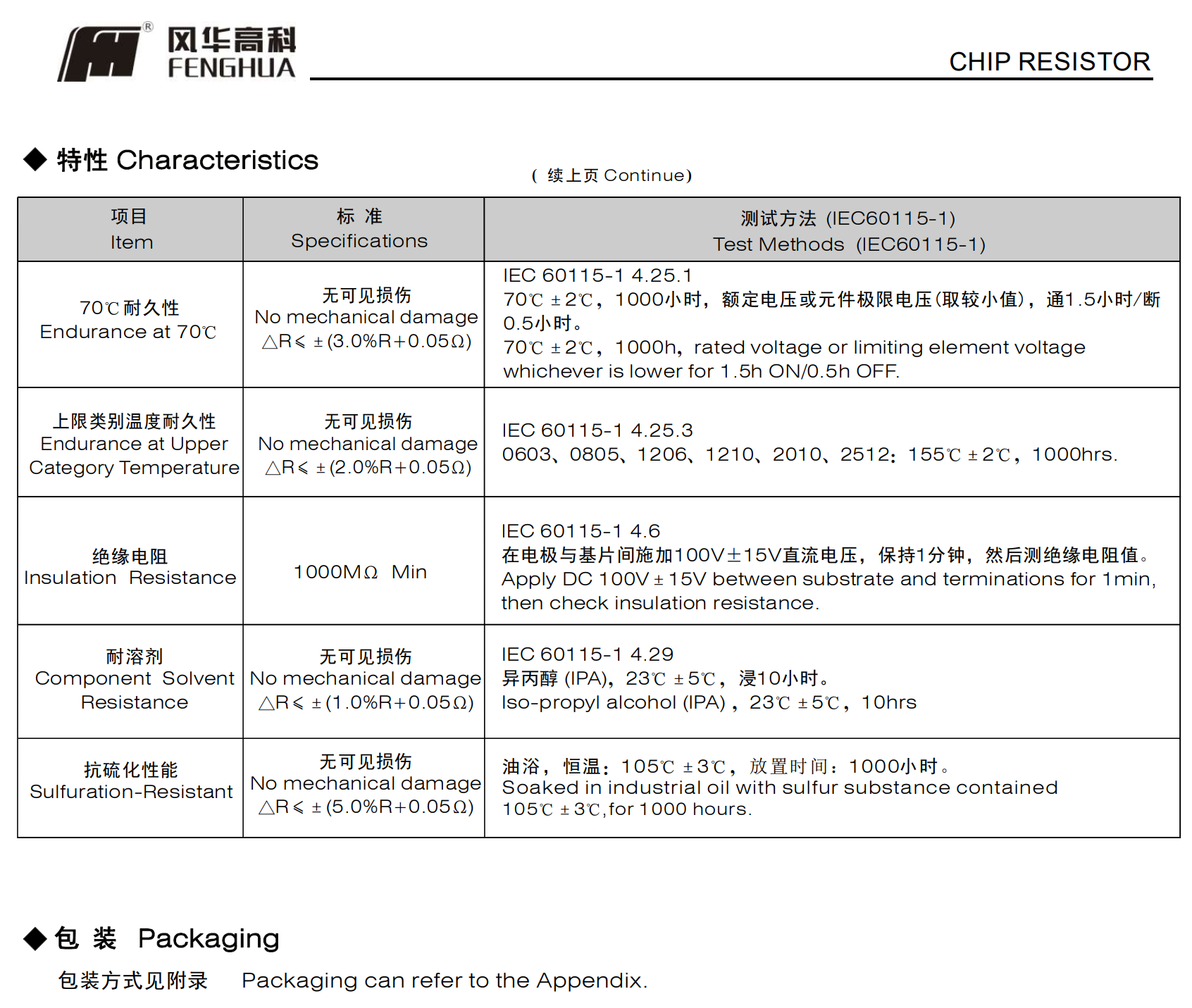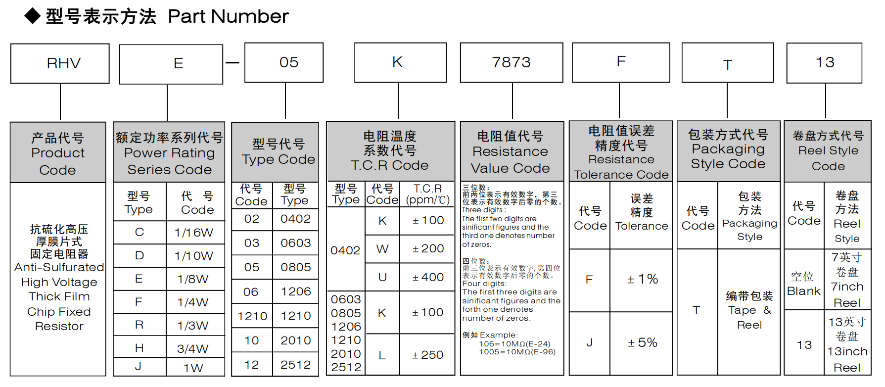 抗硫化高压厚膜片式固定电阻器体积小、重量轻适应再流焊与波峰焊电性能稳定,可靠性高装配成本低,并与自动贴装设备匹配机械强度高、高频特性优越具有优越的抗硫化性能符合RoHS指令要求符合无卤素要求