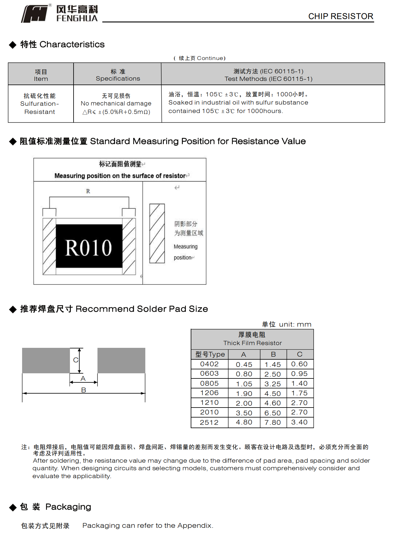 抗硫化超低阻厚膜片式固定电阻器电性能稳定,可靠性高具有良好的抗硫化性能符合RoHS指令要求 符合无卤素要求应用领域:开关电源、音响设备的过电流保护、电压调节器、电源转换器、充电器、L E D灯驱动电源、便携式设备等。
