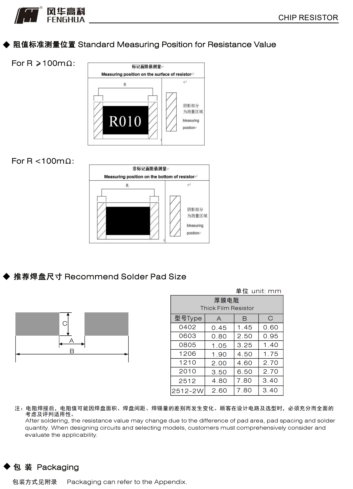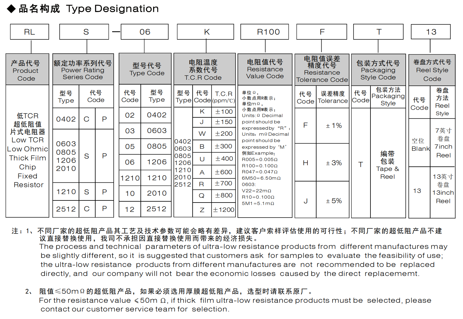 低TCR超低阻值厚膜片式固定电阻器