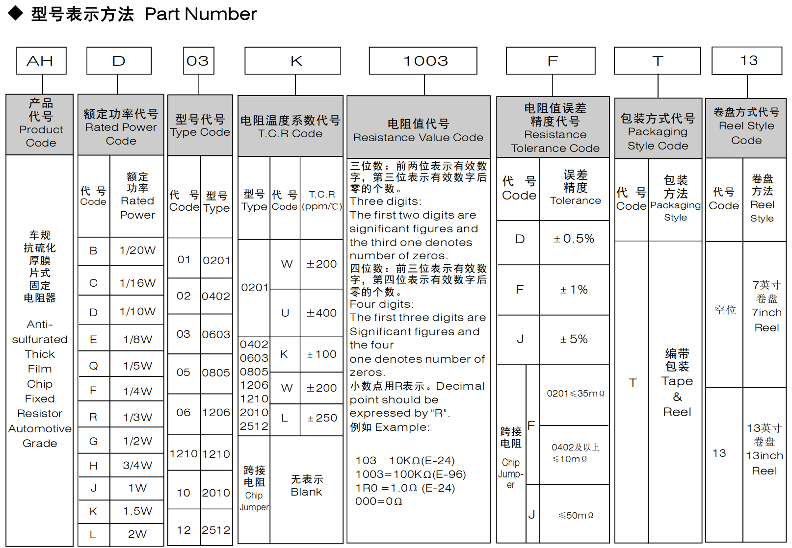 车规抗硫化厚膜片式固定电阻器符合AEC-Q200汽车标准相关条款体积小、重量轻适应再流焊与波峰焊电性能稳定,可靠性高装配成本低,并与自动贴装设备匹配机械强度高、高频特性优越具有优越的抗硫化性能符合RoHS指令要求符合无卤素要求应用领域:发动机动力控制系统、底盘安全控制系