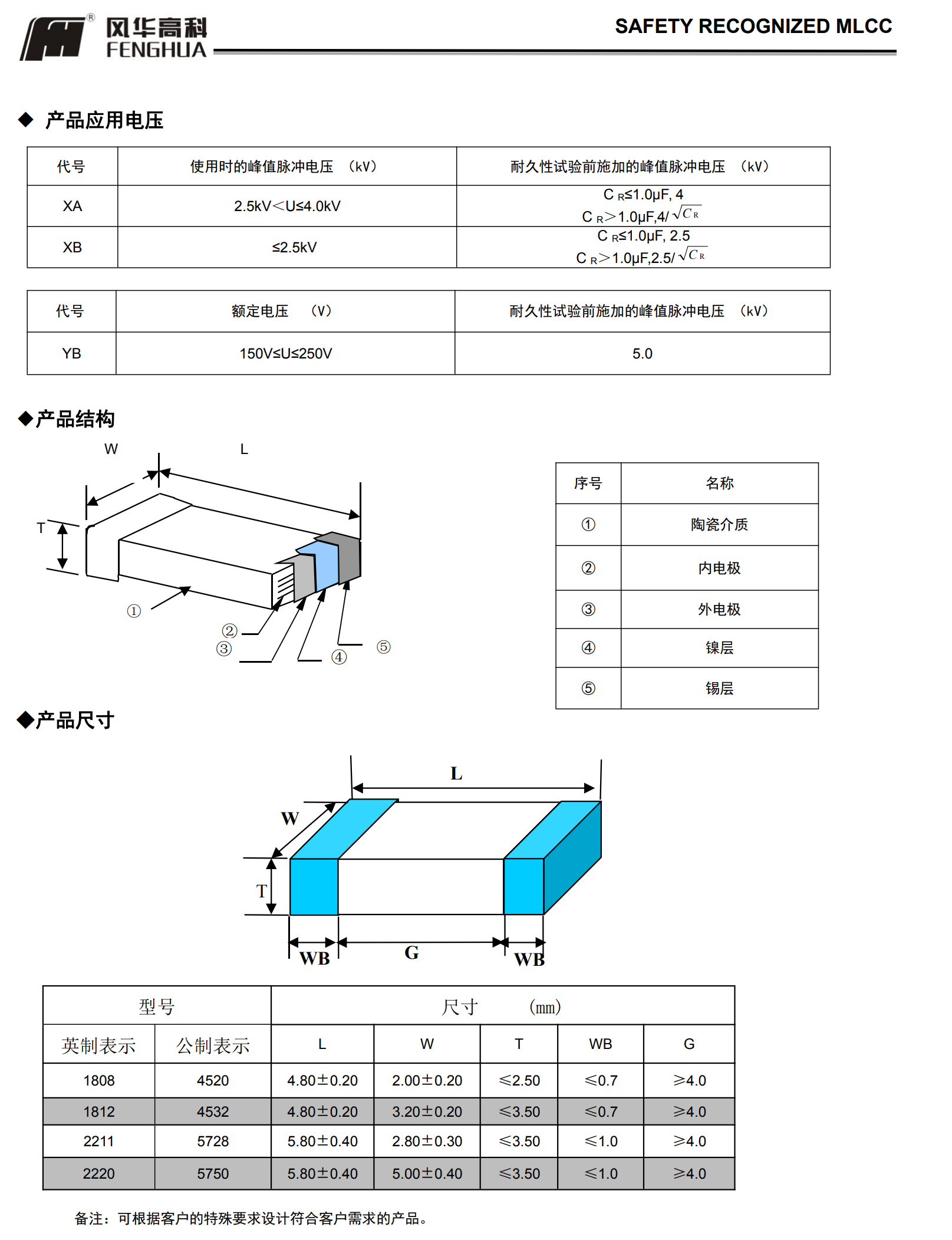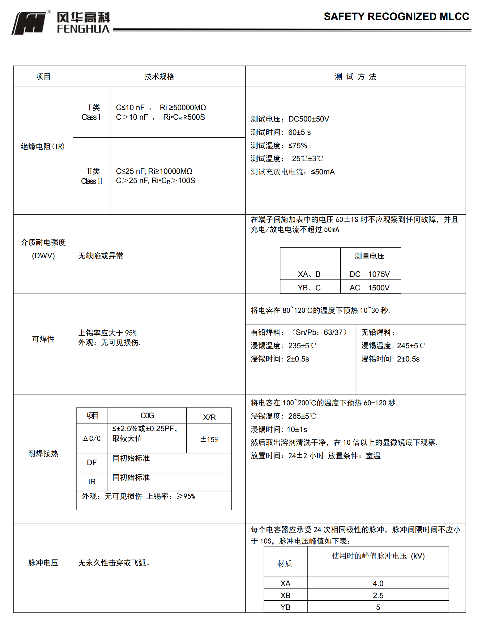 ■ 安全规格认证多层片式陶瓷电容器◆ 特征* 新型独石结构,体积小,电容量高,能在高压下工作* 符合 60384-14 标准。* 仅用于回流焊接* 它们实用于薄型设备。◆ 应用* 适合于无变压器的 DAA 调制调解器线路滤波器及耦合用* 适合信息设备线路滤波器用。