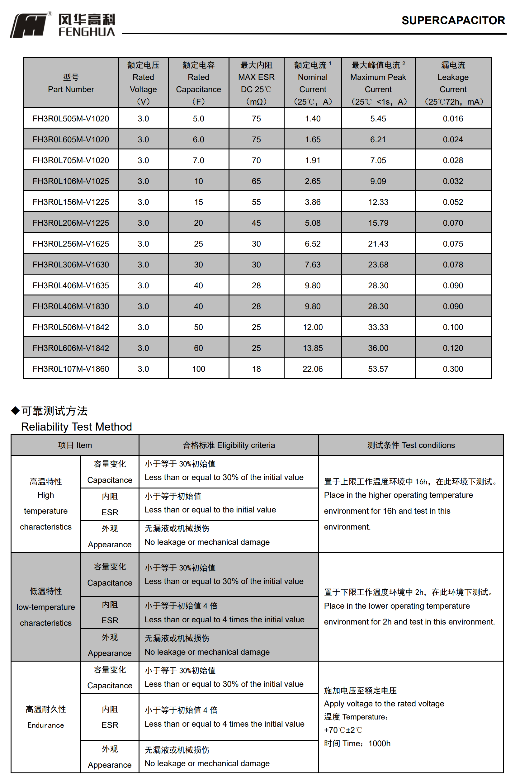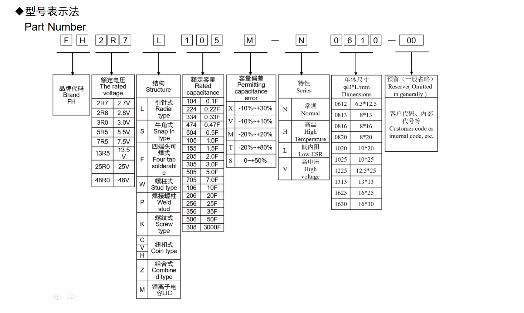 ■高电压系列圆柱型超级电容器◆特征* 内阻低,功率密度高* 自放电率小,72 小时自放电<20%*优异的循环寿命,库仑效率达 95%以上*工作温度范围宽;*绿色环保,满足 RoHs 要求◆应用* 智能仪表、行车记录仪、照明灯具、智能家居、工业控制;* 税控收款机、数码相机、电动工具、电动玩具、备用电源;*无线节能鼠标、无线手