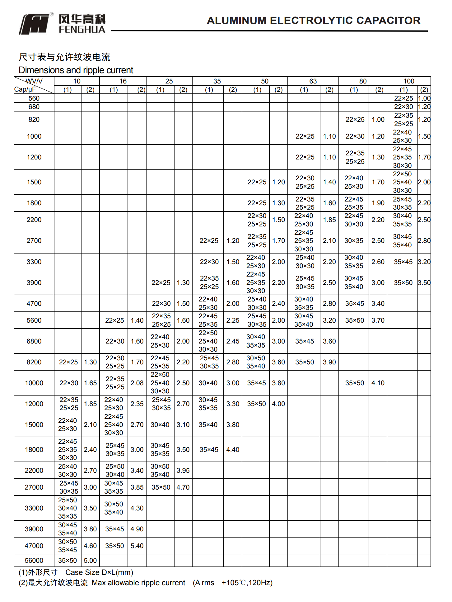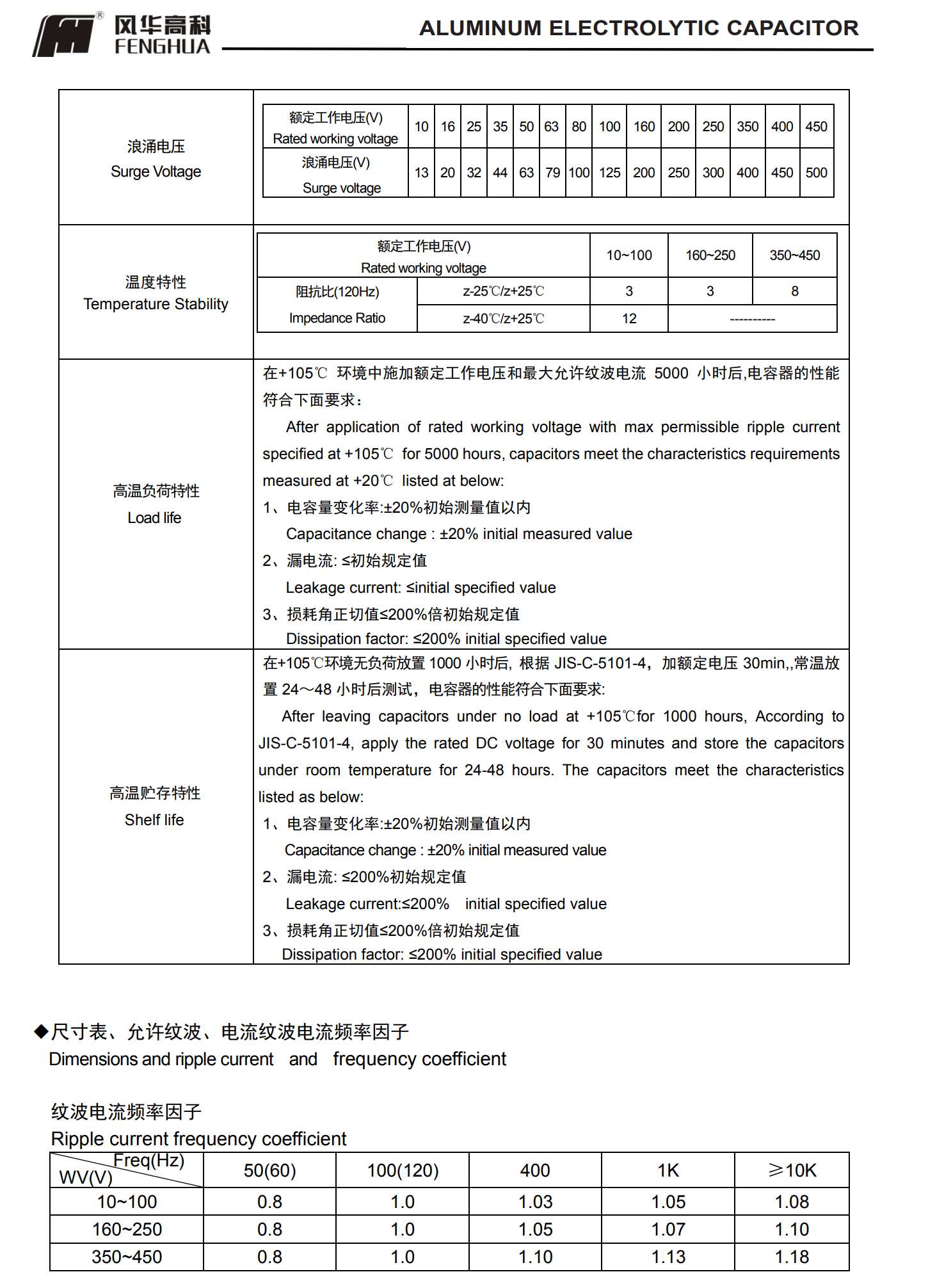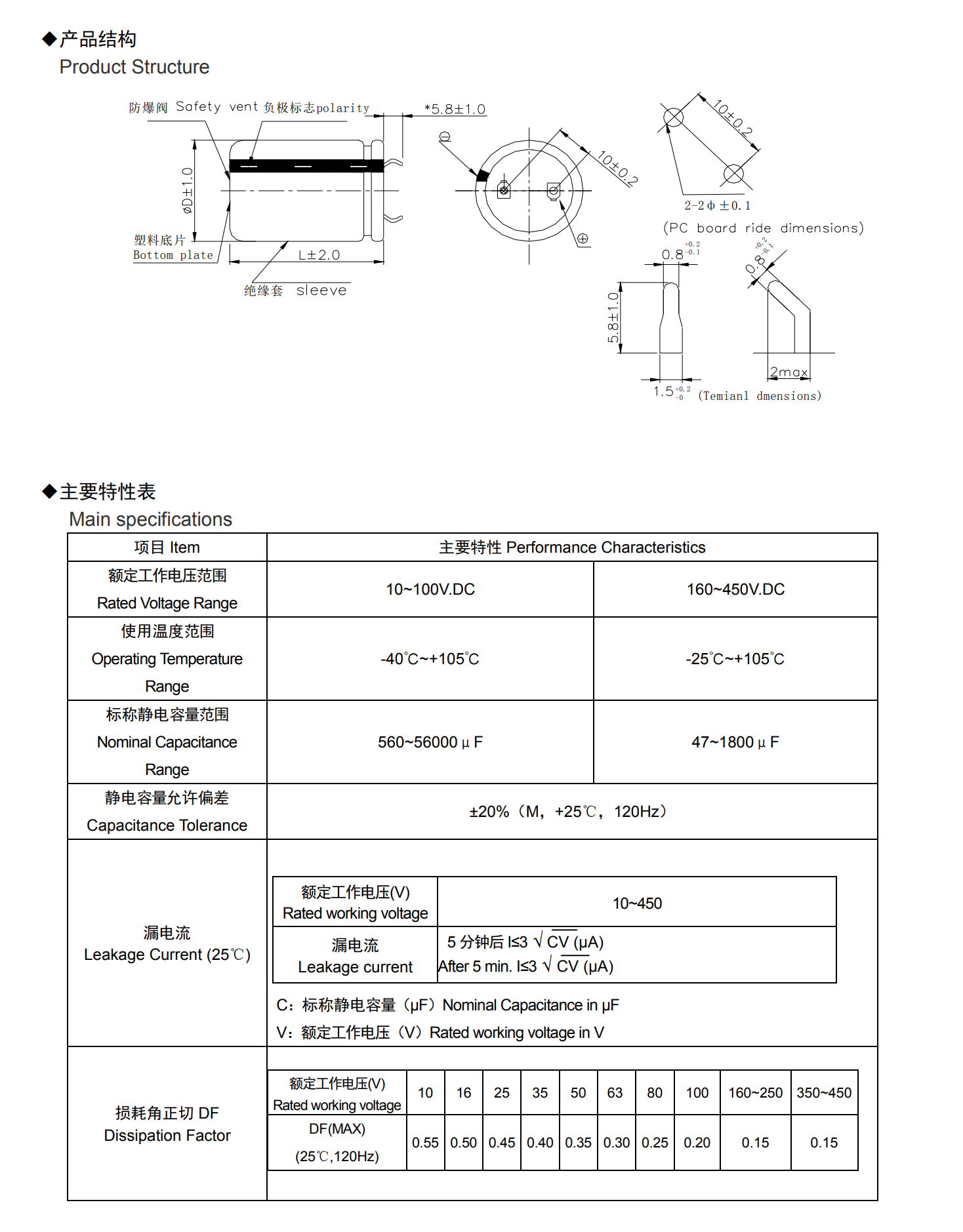 * 寿命: 105℃ 5000 小时