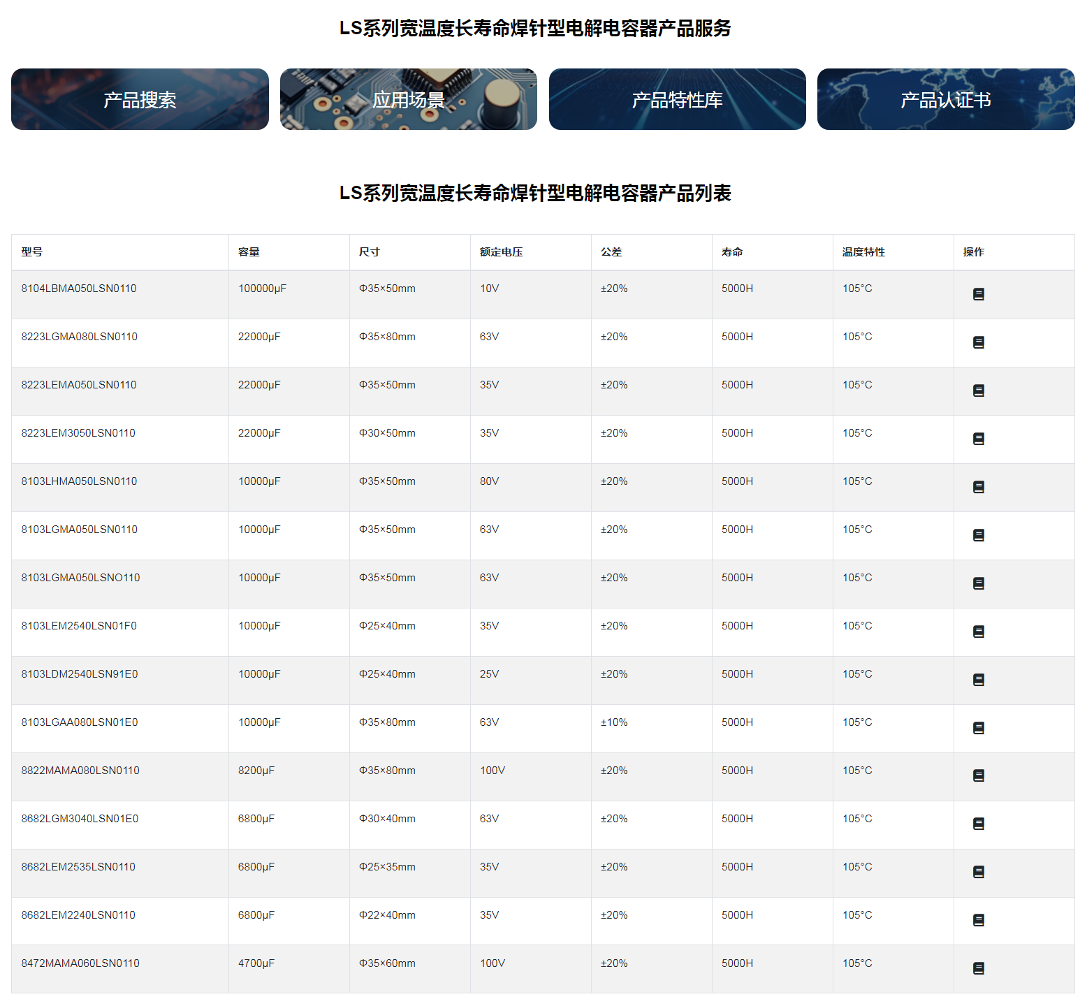 ■LS系列宽温度长寿命焊针型电解电容器