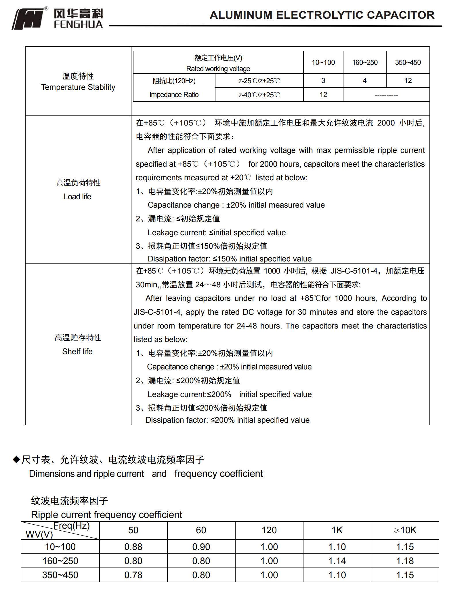 * 寿命: 85℃(105℃)2000 小时