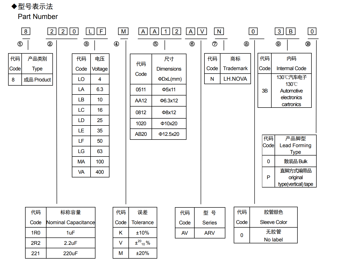 ■ARV车规系列130℃长寿命引线型电解电容器◆特征* 寿命: 130℃ 5000 小时* 耐高温* 符合 AEC-Q200* 符合 RoHS◆应用:* 适用于汽车模块电子产品 、开关电源及其它各种电子产品。