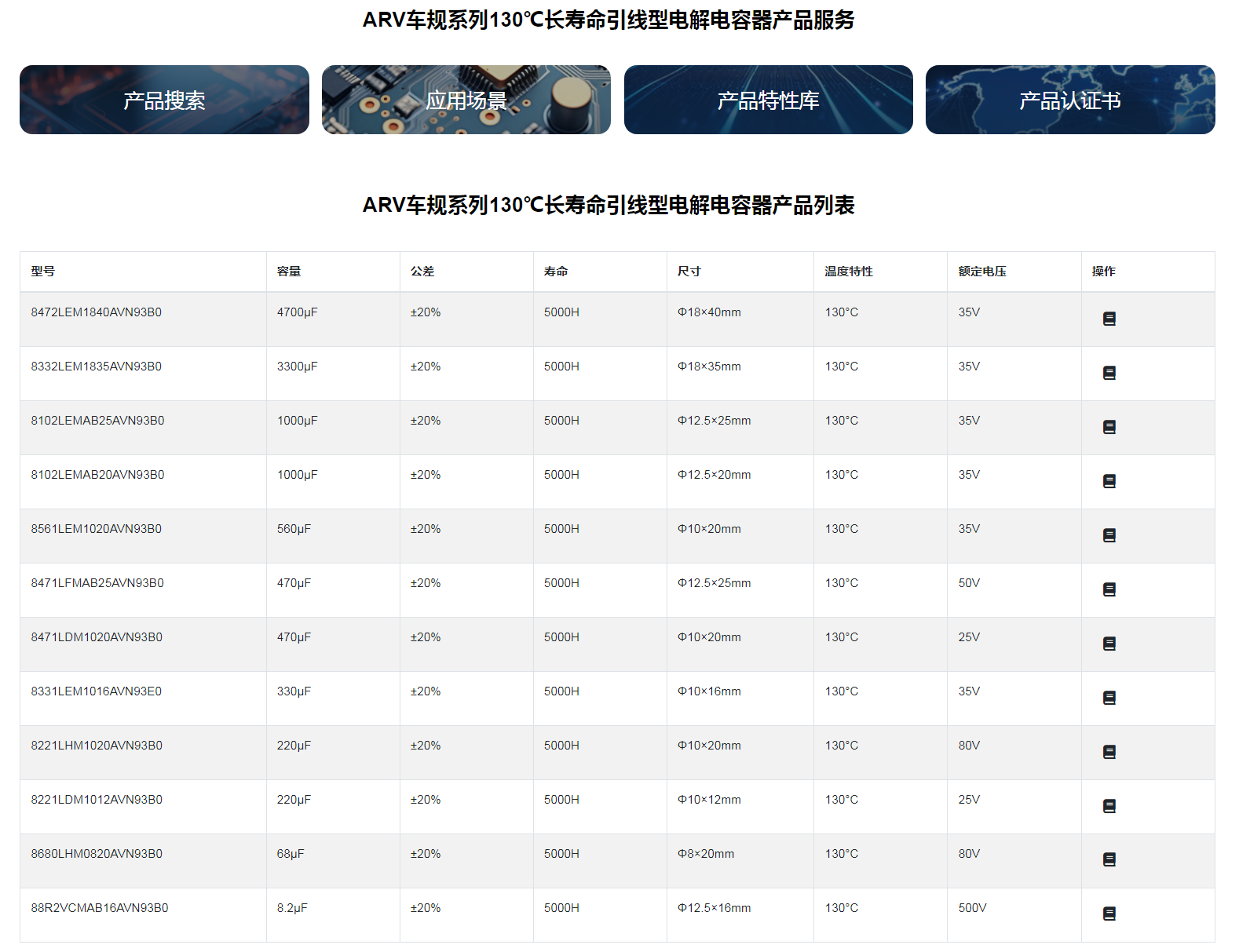 ■ARV车规系列130℃长寿命引线型电解电容器