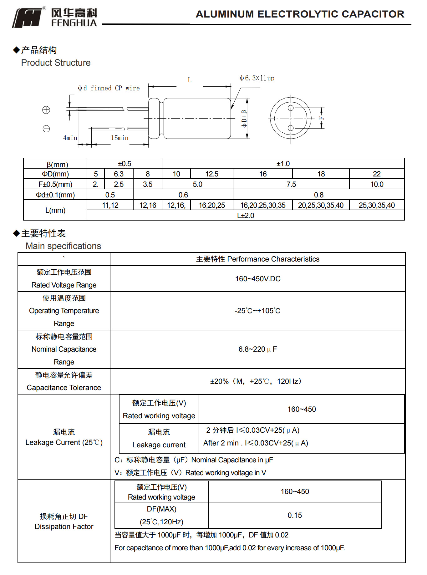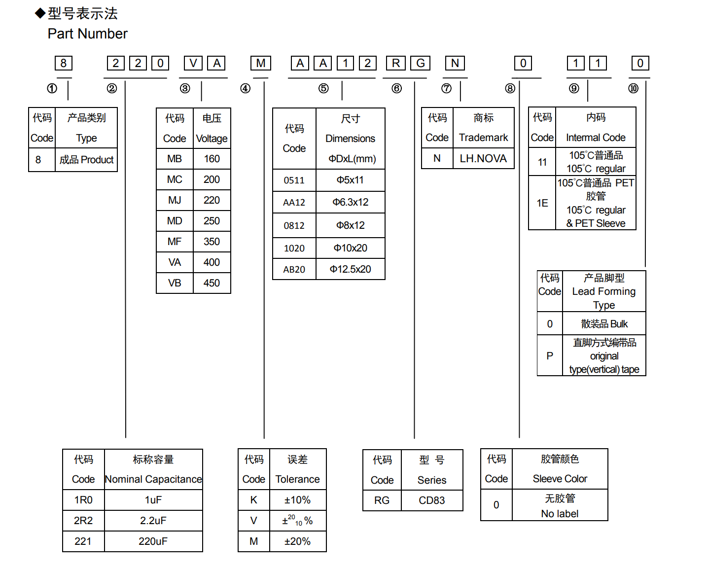 ■RG系列长寿命高纹波电流引线型电解电容器◆特征* 寿命: 105℃ 8000 小时* 长寿命* 符合 RoHS◆应用:* 适用于各类开关电源、LED驱动器等电子产品