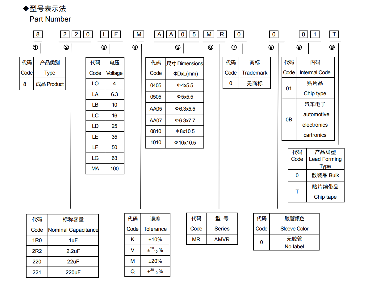 ■AMVR车规系列耐高温标准贴片型电解电容器◆ 特征* 寿命: 130℃ 5000 小时* 符合 RoHS* 符合 AEC-Q200◆应用* 适用于汽车模块电子产品和耐高温环境应用环境产品* 适用于自动表面贴装技术和高密度电路