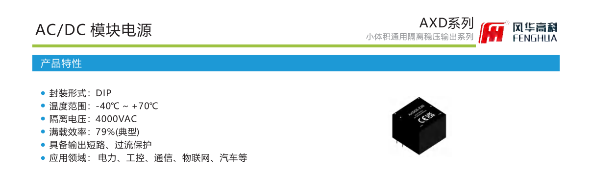 产品特性封装形式:DIP温度范围:-40℃℃~+70。隔离电压:4000VAC满载效率:79%(典型)具备输出短路、过流保护.应用领域: 电力、工控、通信、物联网、汽车等