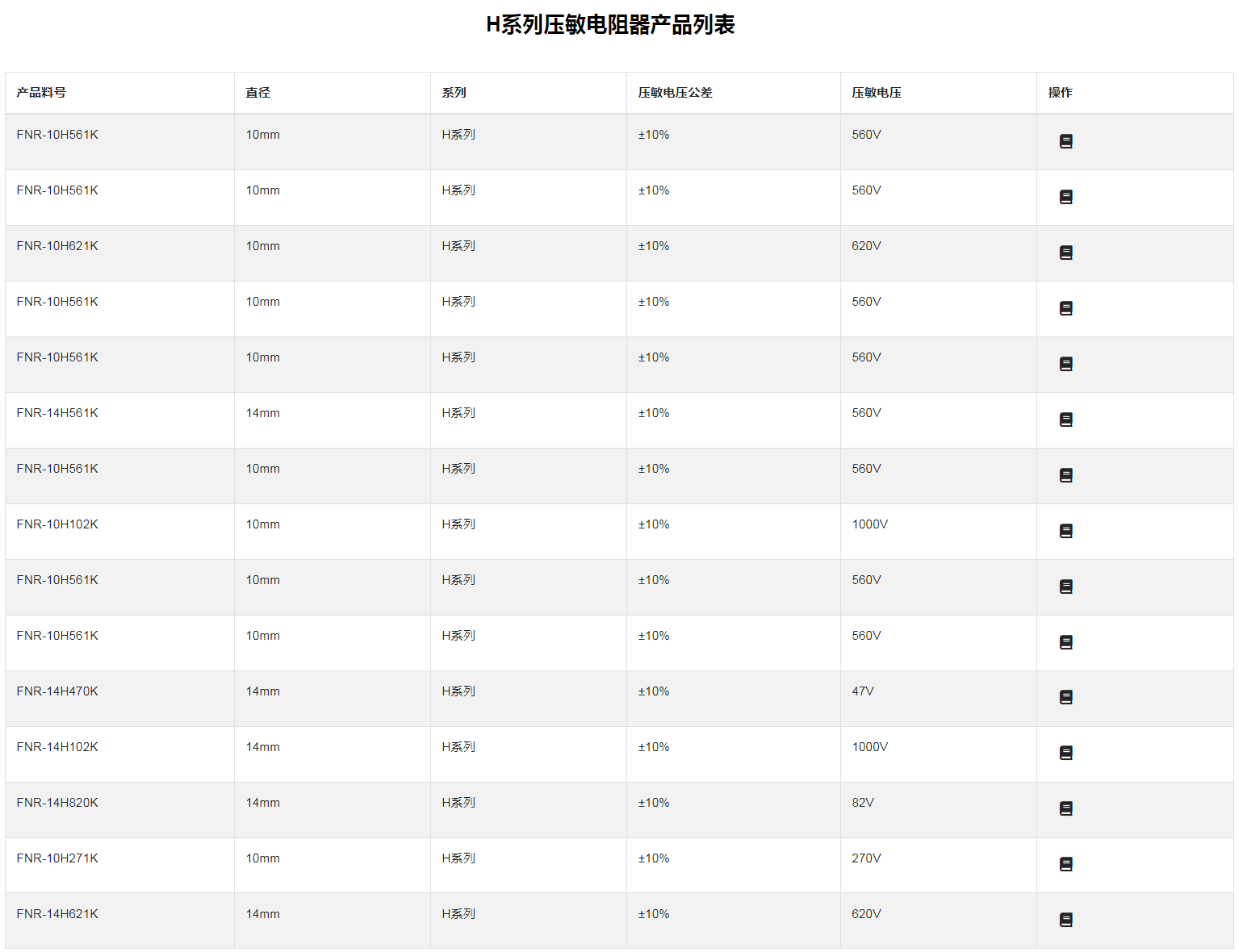 ■H 系列压敏电阻器: