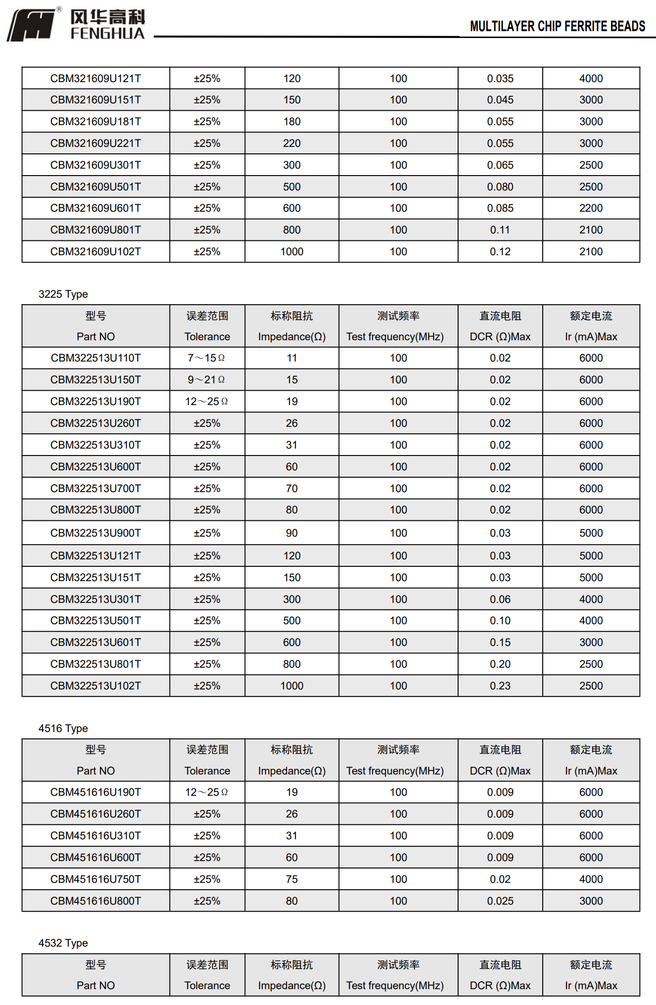 叠层片式铁氧体超大电流磁珠(CBM)
